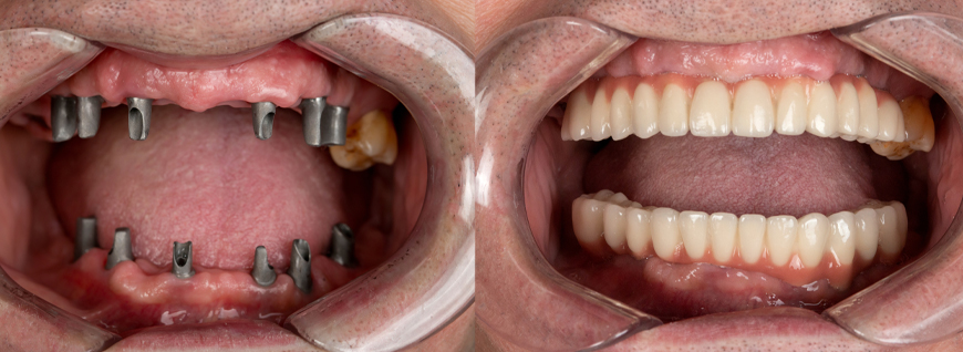Using immediate implants, our implantologists can give you a complete new set of teeth in a week!